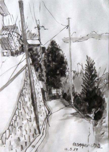 現在はそちら側が表のようで、此処に描いた参道と、しょうめんの石段はふた昔前の感じがします、