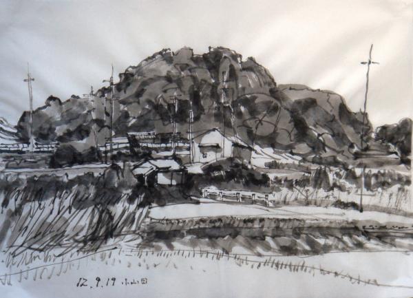 実っている田んぼをまだ描いていなかった、昼からになったが天野街道まで出かけた、