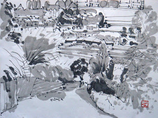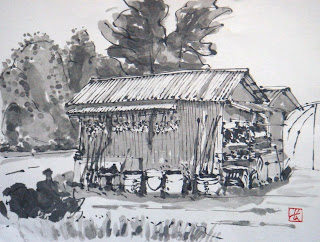 先日裏打ちしたスケッチを掲載します、少し大きめのサイズに描き直しているので実際のスケッチではありません。数枚並べて見ると似たような構図や筆使いが多く、もう少し考えて描かなくてはと思います。
