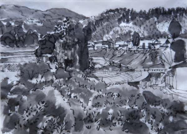 11月10日の絵です、観心寺に行き墨で2枚ほどスケッチをしました、もう一枚は建掛塔を描きましたがカラーで、今年の年賀状に使います、いつも生徒が講義を受けに学年単位で来ているようで地域の学校のカリキュラムにくまれているようです。南朝にゆかりがあるとの内容のようで実際にこのような校外学習から歴史に興味を抱くきっかけになるとよいと思います。